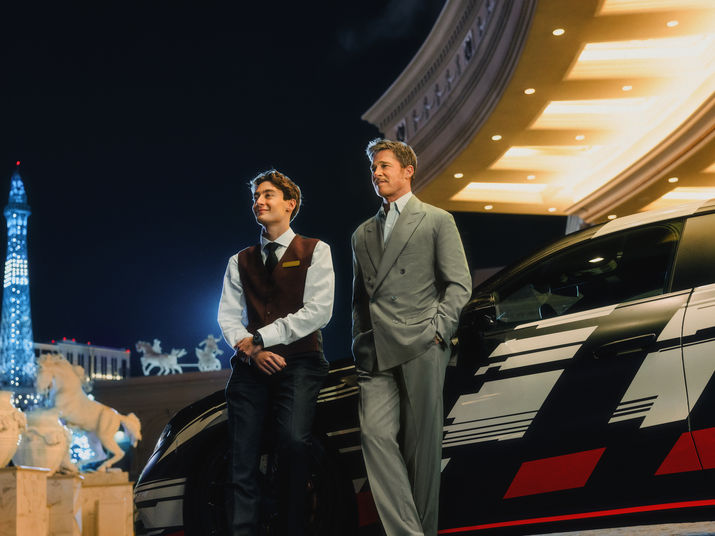Щоб відзначити партнерство, Mercedes-AMG організував видовищний трюк у Лас-Вегасі, де знялися Бред Пітт, Джордж Расселл та замаскований прототип майбутнього автомобіля. Сцена: Бред чекає свій автомобіль на парковці, але виявляє, що паркувальником виявився… п’ятикратний переможець Гран-прі Формули-1 Джордж Расселл. За кермом прототипу Mercedes-AMG GT 4-Door Coupe Джордж демонструє можливості авто — неймовірну точність, маневровість та драйв, які визначатимуть нову модель.